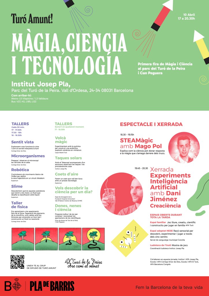 El Turó de la Peira tiene plan bonito para familias curiosas. La primera Feria de Magia y Ciencia aterriza el 10 de abril en el Institut Josep Pla con una tarde pensada para mezclar asombro, juego y ganas de descubrir, todo en clave de barrio y con entrada gratuita. Magia, ciencia y tecnología se darán la mano en una cita que busca acercar el conocimiento a pequeños y mayores sin ponerse estupenda, sino haciendo justo lo contrario: volverlo cercano, participativo y muy disfrutón.