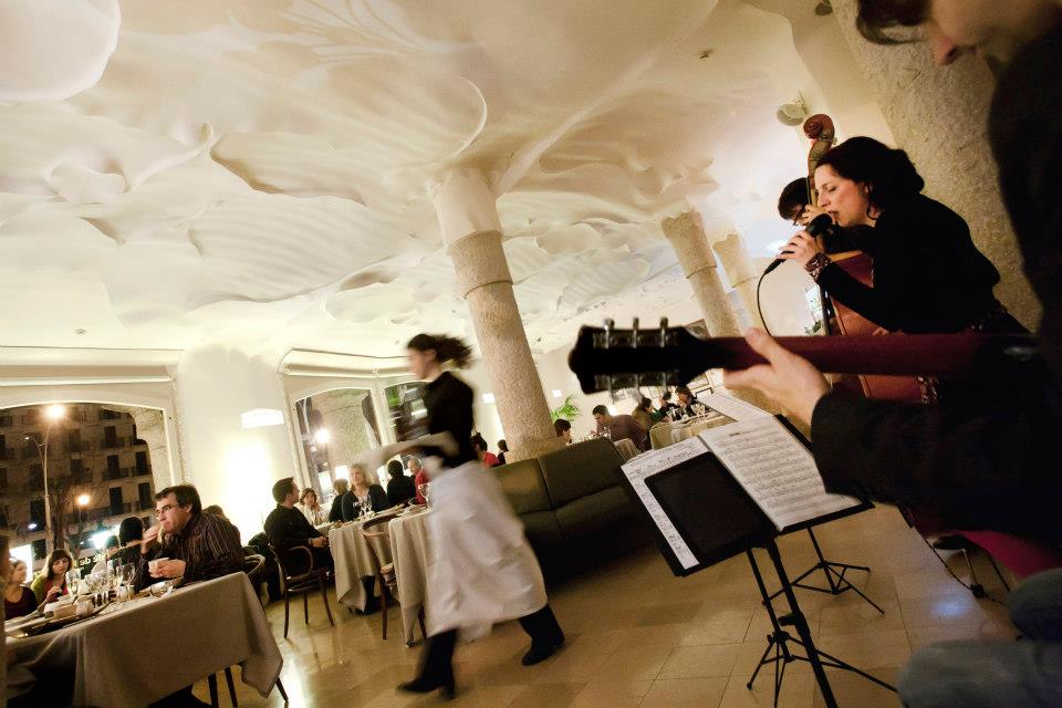 ¡Penúltima oportunidad para disfrutar de las cenas musicales de La Pedrera! Y te avisamos con tiempo, para que luego no digas. Esta semana, mientras degustamos alguno de sus deliciosos menús (el de aperitivo, el de cena o el de la carta, elaborada por David Agut, chef ejecutivo de los restaurantes Laie y que ha sido asesorado, además, por la Fundación Alícia), contaremos con la música en directo de Cordes a l’Aire (dueto formado por Oriol Roca al contrabajo y la cantante Sabina Witt, que interpretarán temas de jazz y bossa nova) y el magnífico guitarrista Andreu Zaragoza. ¿A qué sabe un arroz con bolets aderezado con notas de jazz? ¿Y una escalivada de verduras a ritmo de bossa nova? ¿Le darán un sabor especial los acordes de guitarra al gazpacho del Bulli? Si quieres descubrirlo, este jueves tienes una nueva ocasión y, atento, porque sólo queda una sesión más, la del próximo jueves 28, en la que Anxious Myopic Boy será el encargado de ponerle música a esta velada gastronómica de lujo. ¿Nos vemos en La Pedrera?
